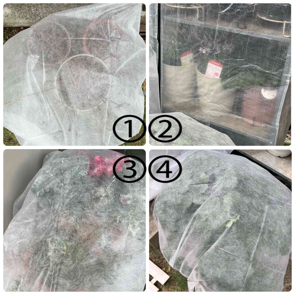 寒さには強いけど、花芽が霜で傷むかもとのことで念のため不織布を。
