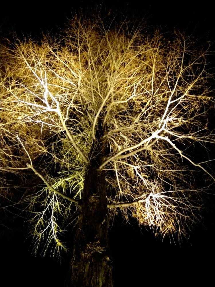 私は、暗闇の中に細い枝先まで浮き上がって発光している、この見上げた光景が血管写真に見えました😆😁