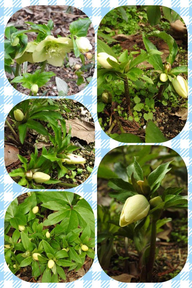 昨日は咲いていた花壇、今日は白花で蕾の花壇💮クリスマスローズ💮