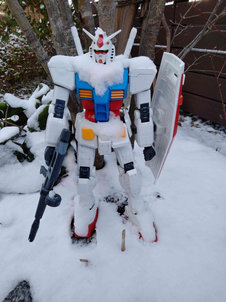 明けましておめでとうございます🙇(遅)今年もよろしくお願いします!雪が降ったので一晩庭に大きいサイズのガンプラを出していました。