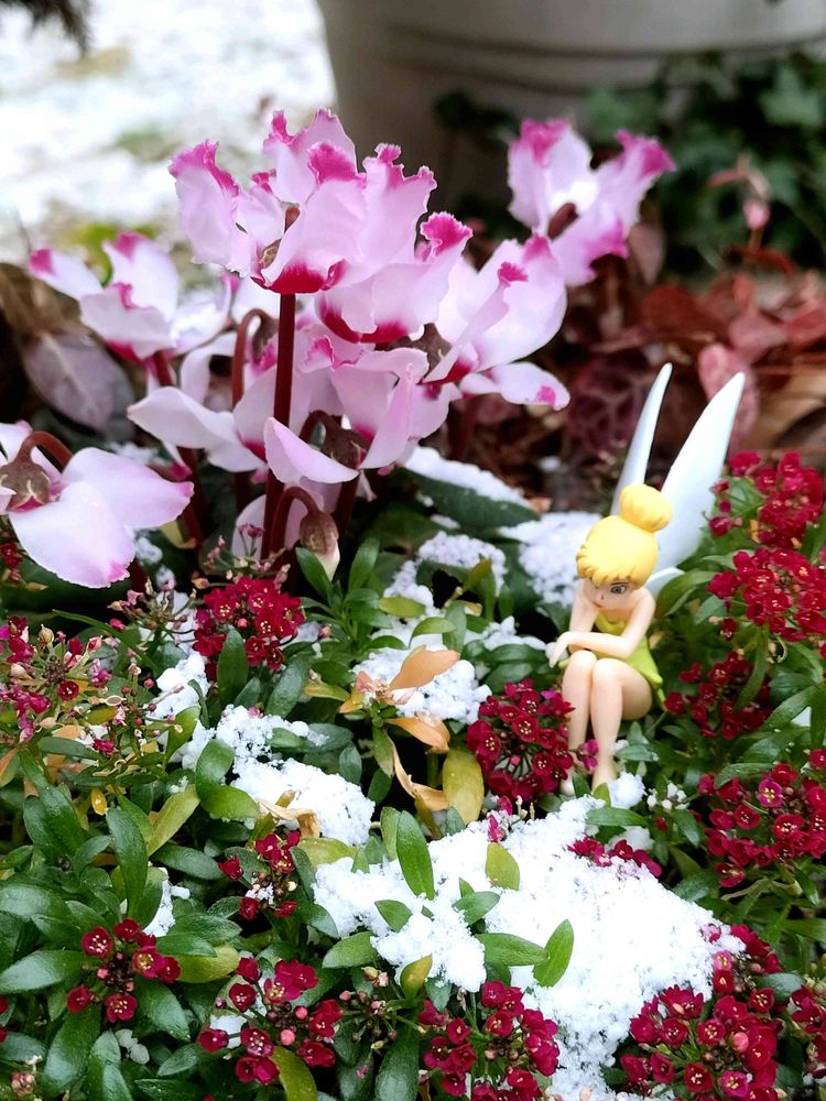 朝一番にシクラメンを見て可愛い〜って、すぐにティンカー・ベルさん連れて撮影会😁