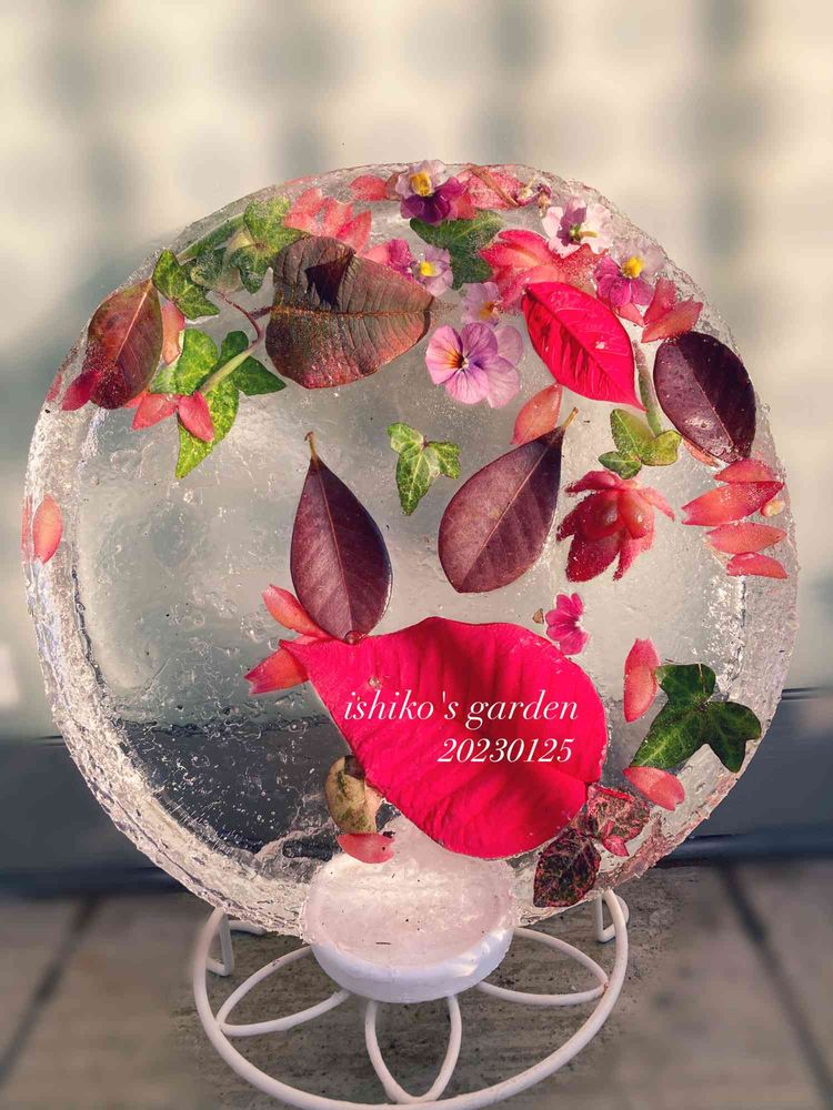 昨夜から仕込み、厚さ2センチの氷アートが完成しました🎶