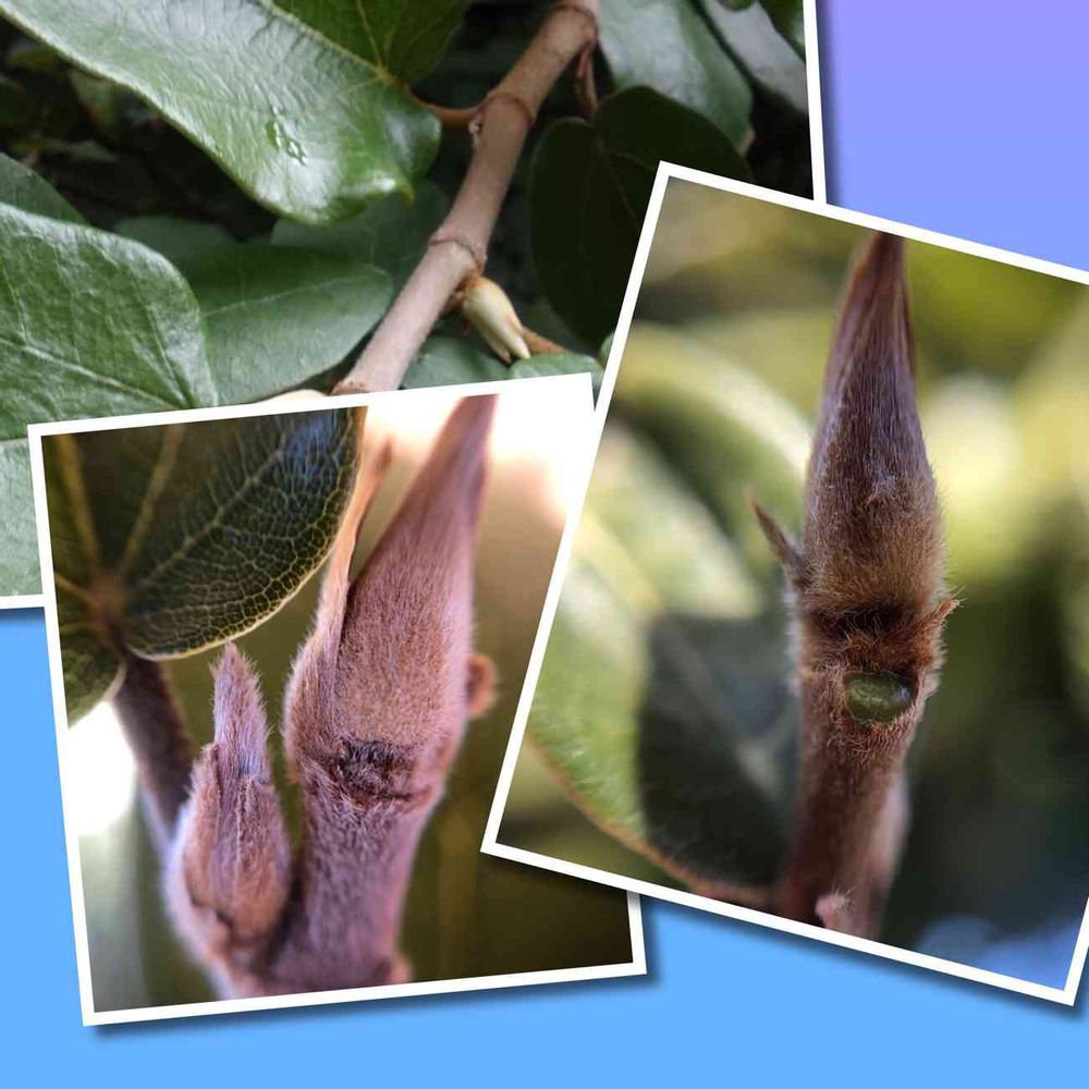 上は夏前の冬芽 下は寒くなってくるとこんなに毛がモフモフになって新芽を守るのですね⁉️🌀