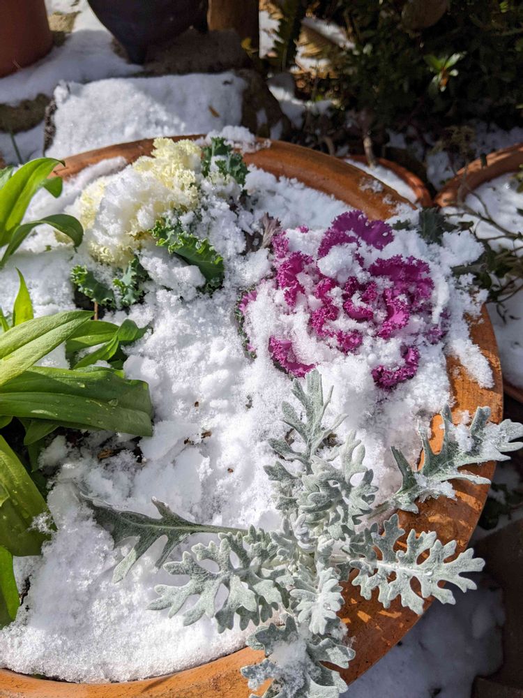 ざぁ葉牡丹!雪模様😅🥶❄️この姿見れるのも、後何回かなぁ~🤔🙄😄👍