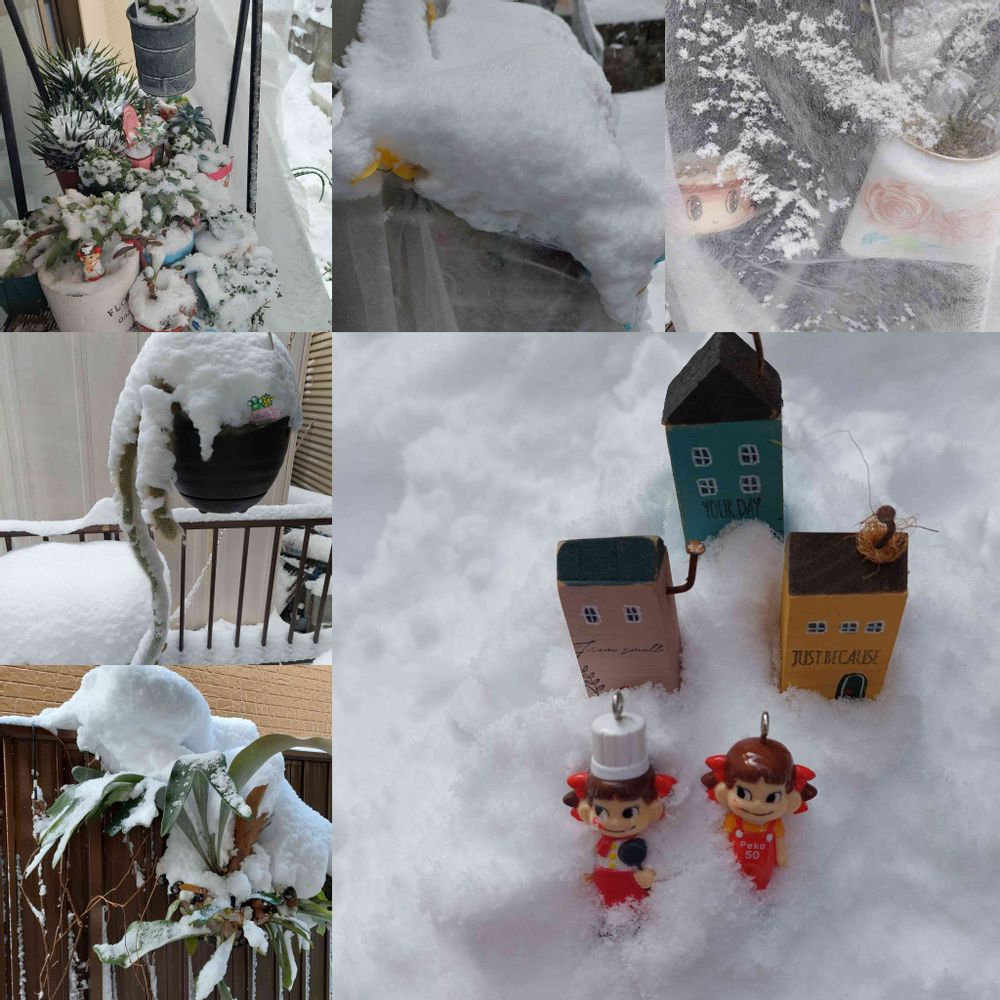 雪に包まれてお花や多肉ちゃんは雪だるまになってました⛄☃️