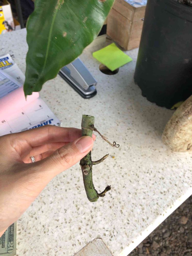 伸びてたミニモンステラの茎の部分をカットして水耕栽培にチャレンジ
