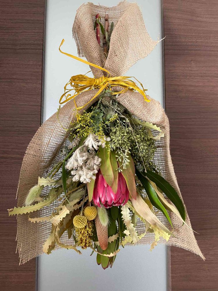 プロテアやバンクシア、ユーカリの実、グレピレアetc…贅沢な花材❤️