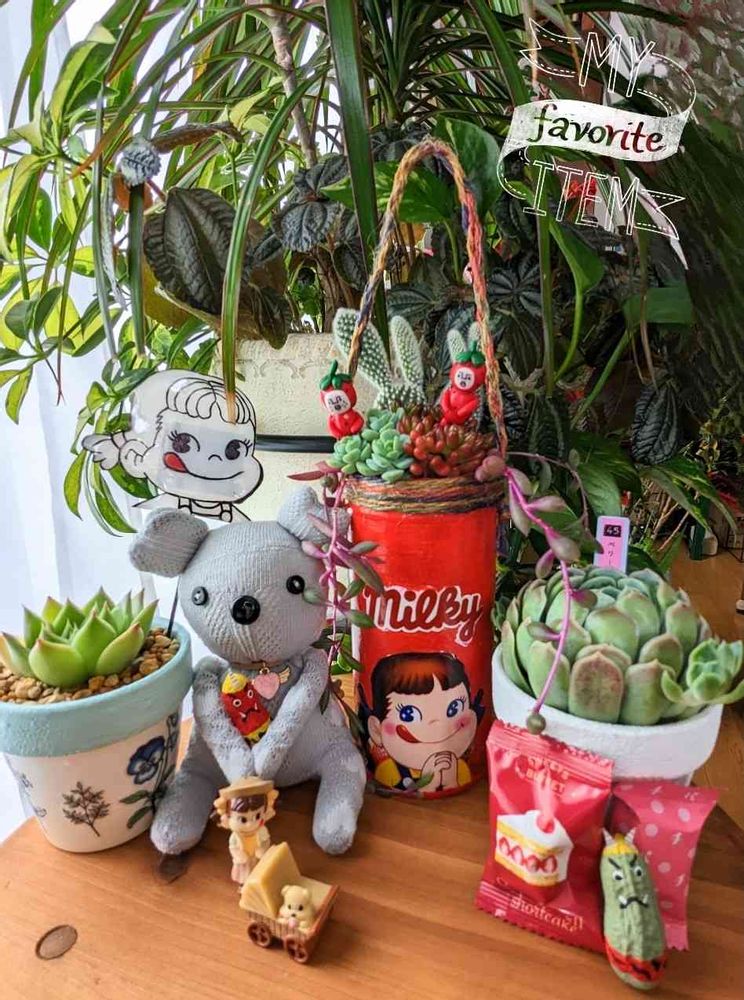 ペコちゃんのリメ缶もかわいい❤ここにもバニーカクタスが😄