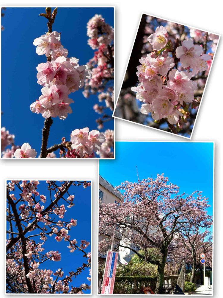 寒いですが雲ひとつない青空🟦にピンクの桜が映えます!