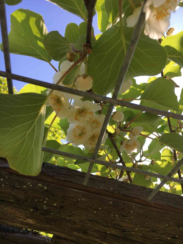 キウイの花とっても可愛いですね!そして実ができたらもっと嬉しいですよね!成功して沢山の実ができますように‼️💕( ◠‿◠ )