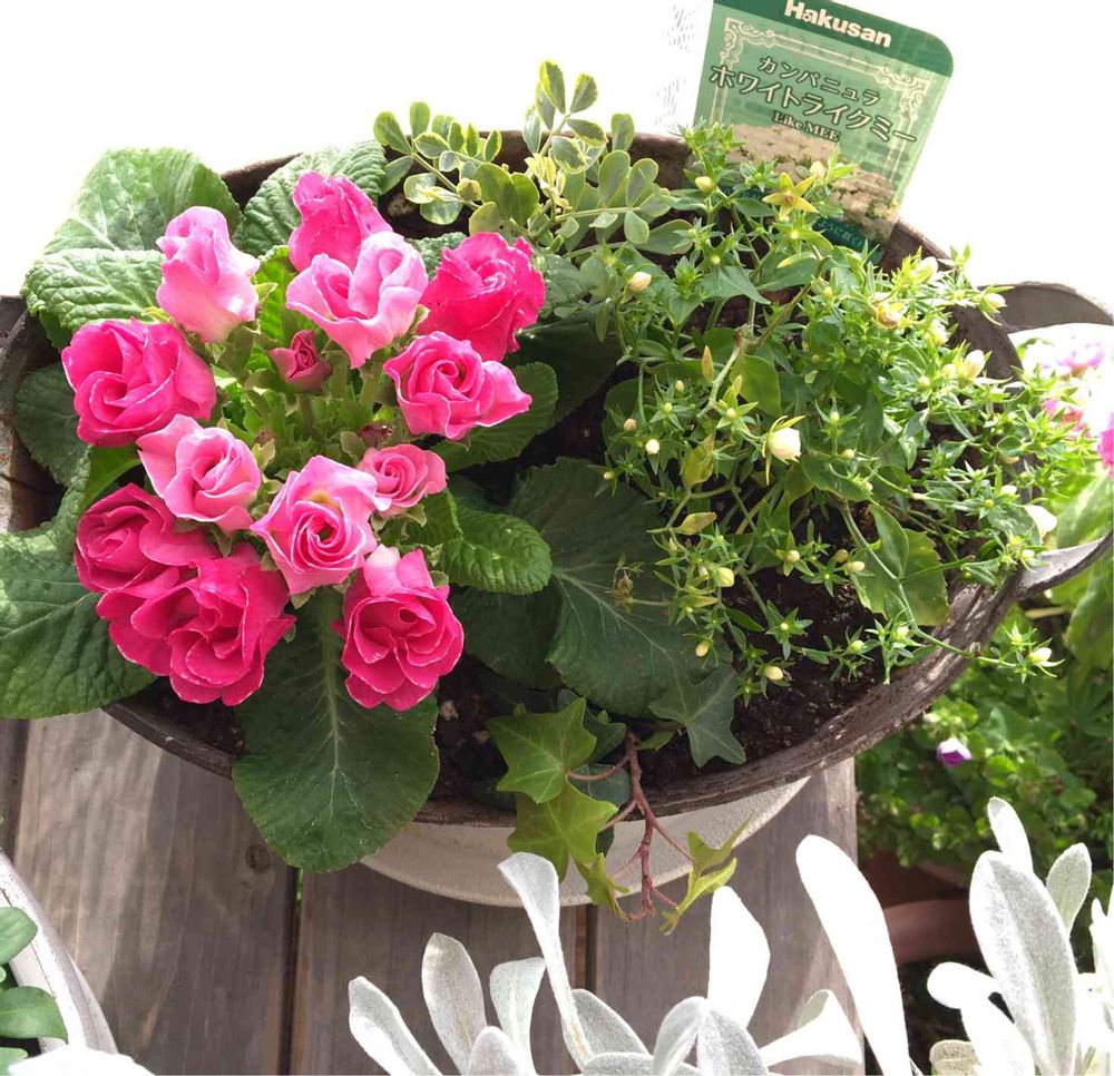 窓辺,寄せ植え,バラ咲きプリムラジュリアンの投稿画像