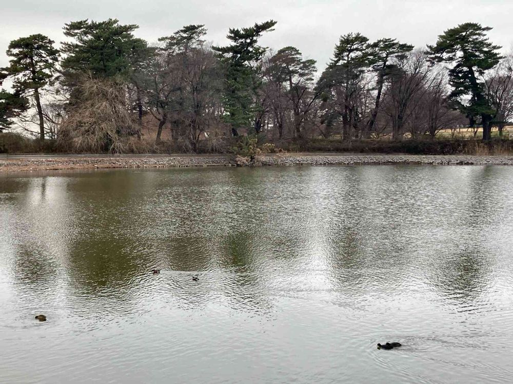 墨絵のような池でしょ⁉️泳いでいるのはオオバンだそうです‼️ー前橋市大室公園よりー🏷水辺の水曜日に参加させてください🙇♀️