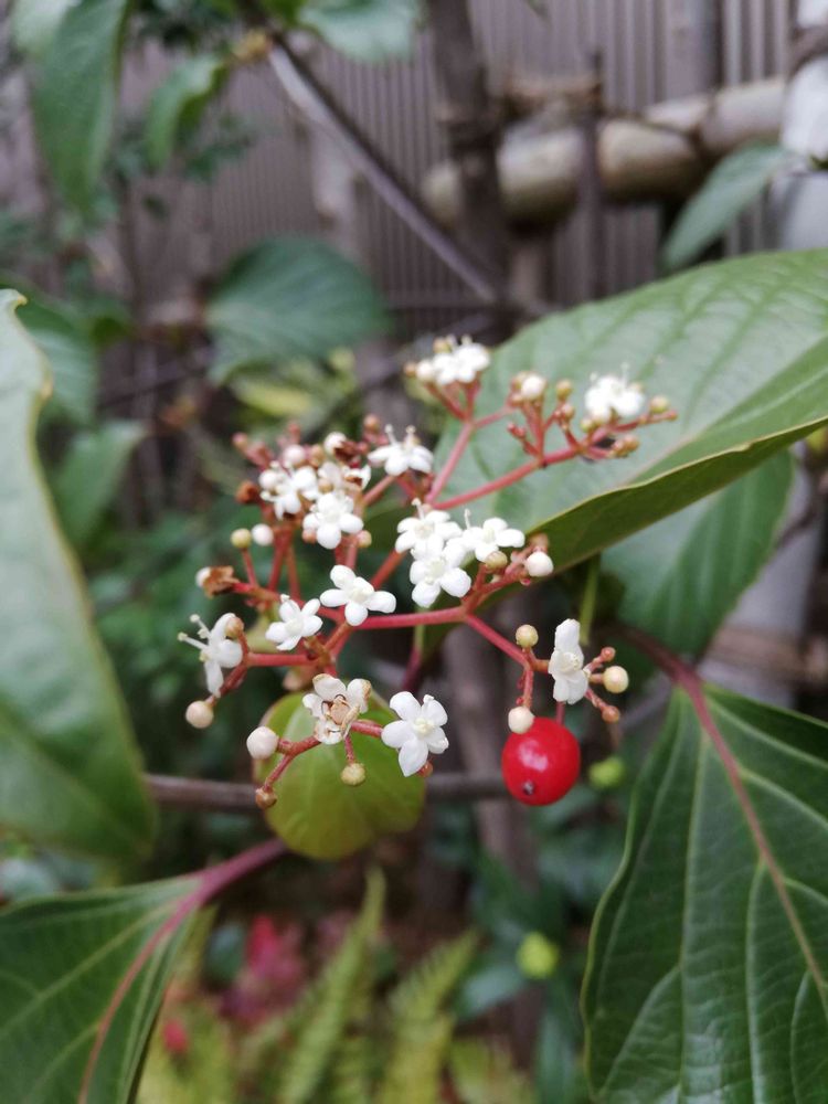 なかなか見かけない赤い実と白いお花ですね〜🔴🌿♡^ - ^♡