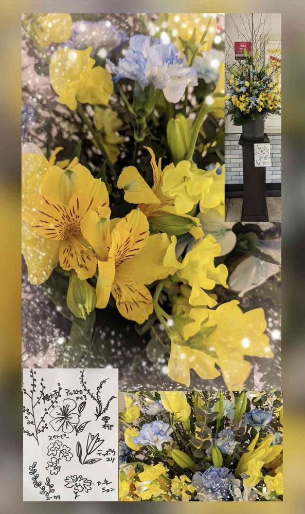 この時は黄色いお花がメインで 差し色に水色が使われていたんですね🤗