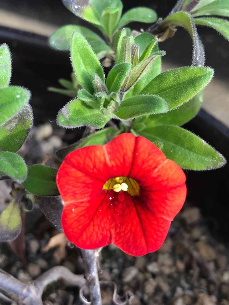 このペチュニアは冬越し用に昨年の11月に全ての枝を切詰め芽吹かせたものです。先日(1/17日)アップしたものは寒さに弱いタイプだったのでランと同居でしたが、これは強いので屋外で冬越しです。昨日はマイナス3℃まで下がりましたが元気でした。ただ霜に当たらないように軒下に入れています。花はぼちぼちで現在開花は3つです😊。