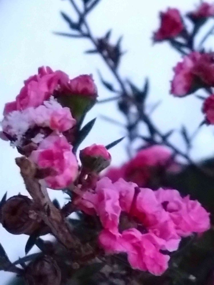 ギョリュウバイこの前お迎えしたばかりで鉢植えなの❗玄関の中で避難してあったから雪に埋もれず助かった😅