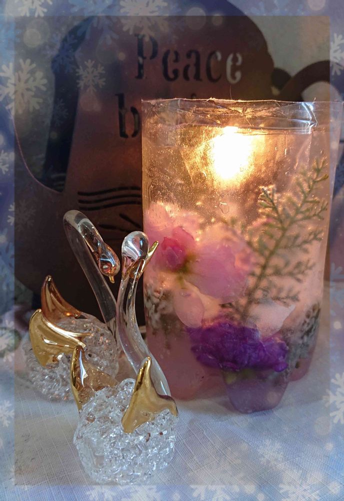 あまりにも寒いので、氷のキャンドルホルダー作ってみました🎵