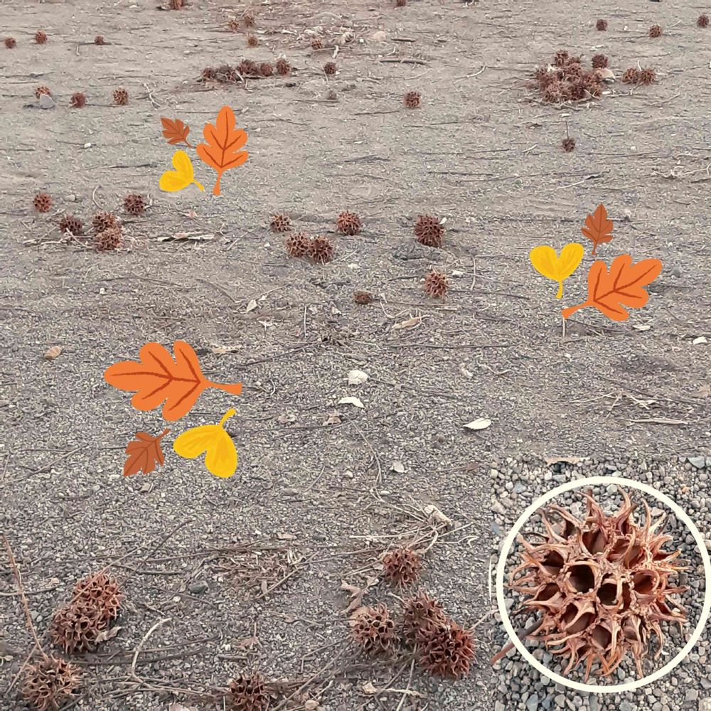 強風が吹いた翌日、モミジバフウの実がこ〜んなに…コロコロ((0:)(.0.)(:0)(˙0˙)♪