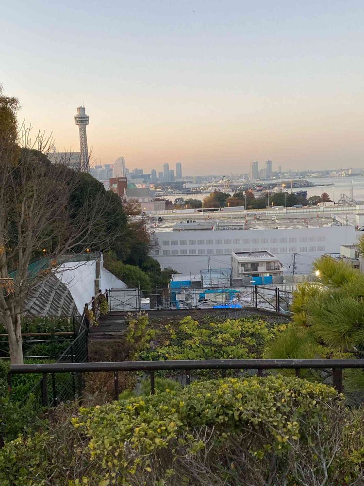 港の見える丘公園よりマリンタワー山下公園を眺める