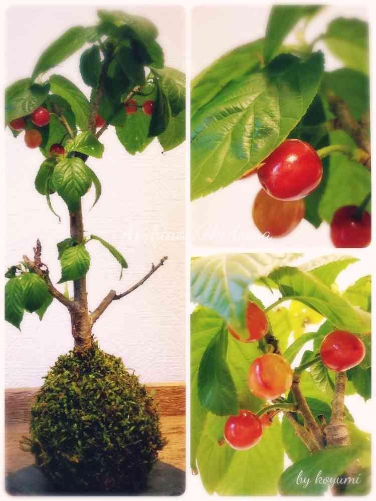 さん🌼家にある苔玉の4玉中、このサクランボだけ自分で作ってなくて、出来てるのを購入しました(*´ω`*)