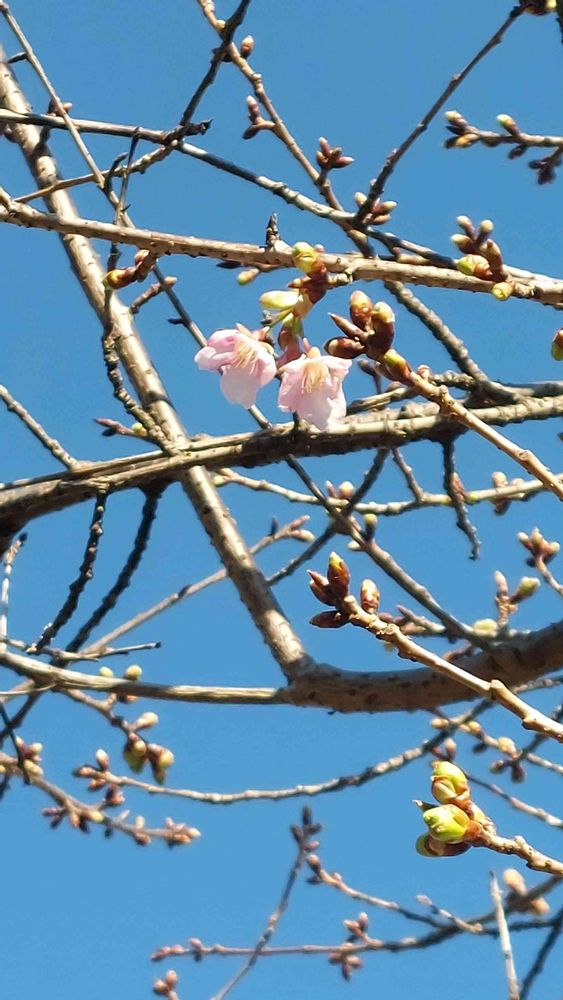 川津桜、寒さの中一輪二輪の花🌸が、かじかんでいた心、体が一辺に解ける思いがしました。