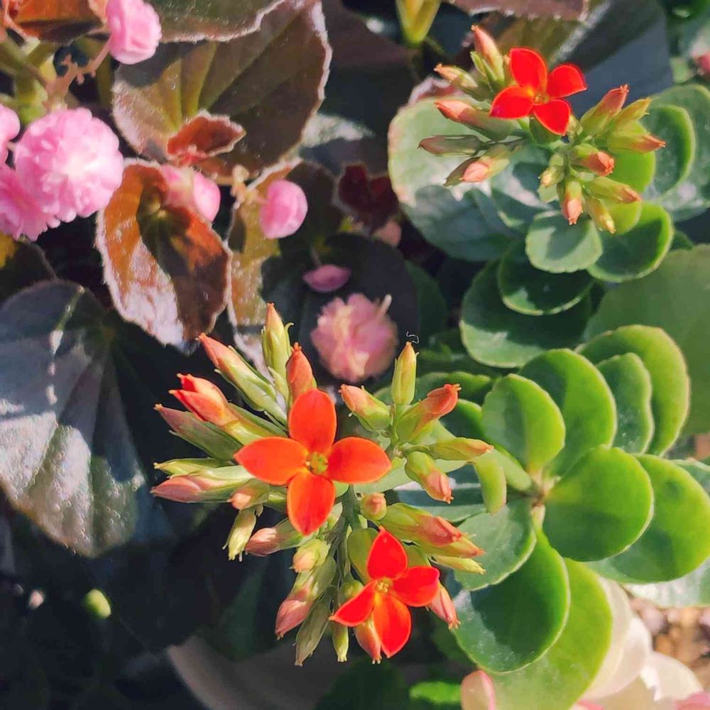 窓辺のカラニコエがボチボチ咲き出しました🌿🧡🌿