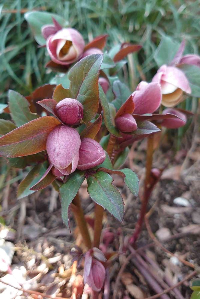 赤紫色のクリスマスローズが沢山の蕾を付けています🥀