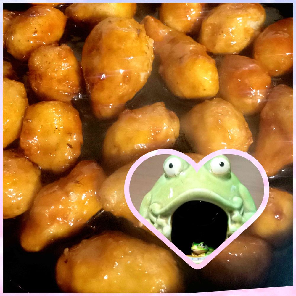 カエルちゃんの顔が強烈過ぎてお芋料理が入って来ない🤣🤣🤣