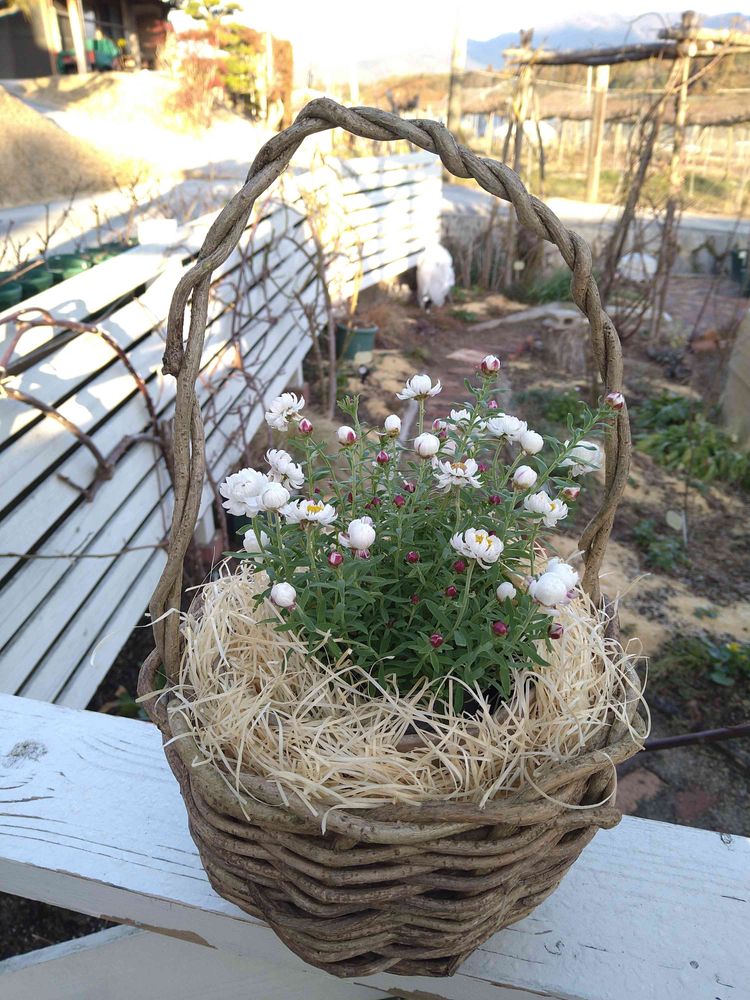 ご自分で作られたかごに花かんざし植えられたんたんですね。😍