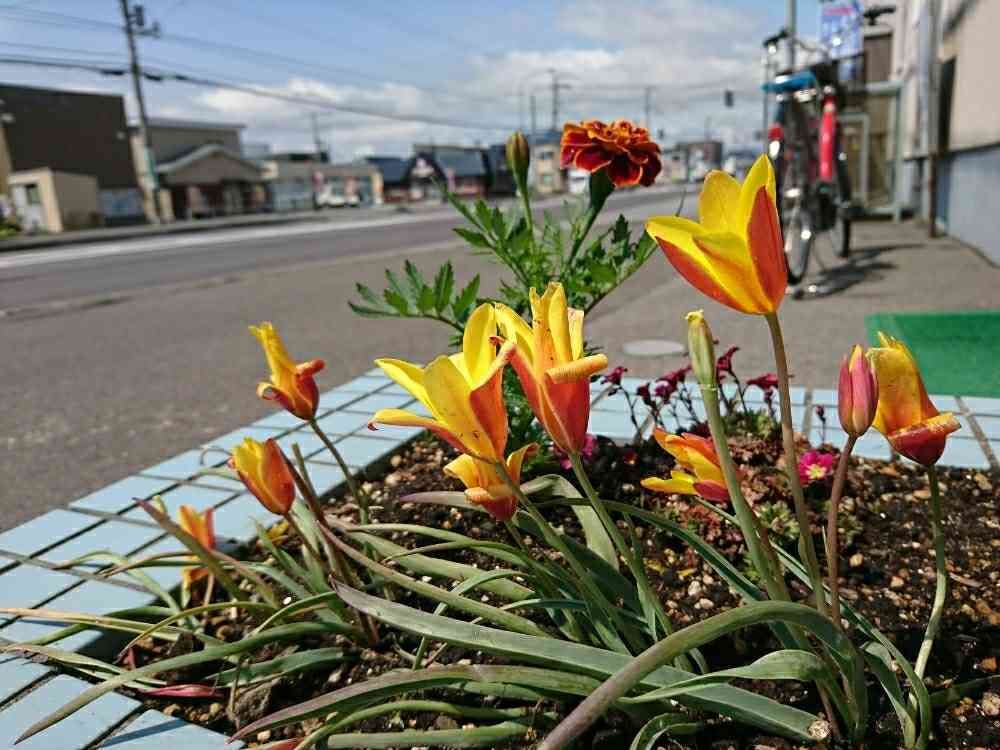 薬局の花壇に咲いていたチューリップ…🌿💕💛🌷💛💕🌿