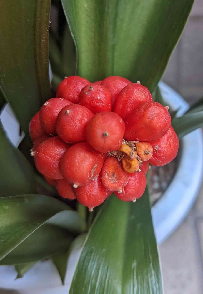 オモト万年青が、真っ赤な実が付いて綺麗ですね〜😍🌿🍒🌿