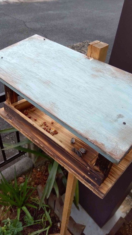 気まぐれにきた野鳥に調子に乗ったので、バードフィーダーを作りましたが、隠せる木とかがないので、全く寄り付きません…🐦