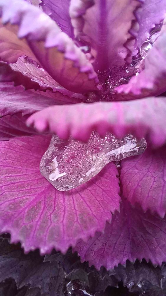 葉牡丹の雨粒凍ってます😂