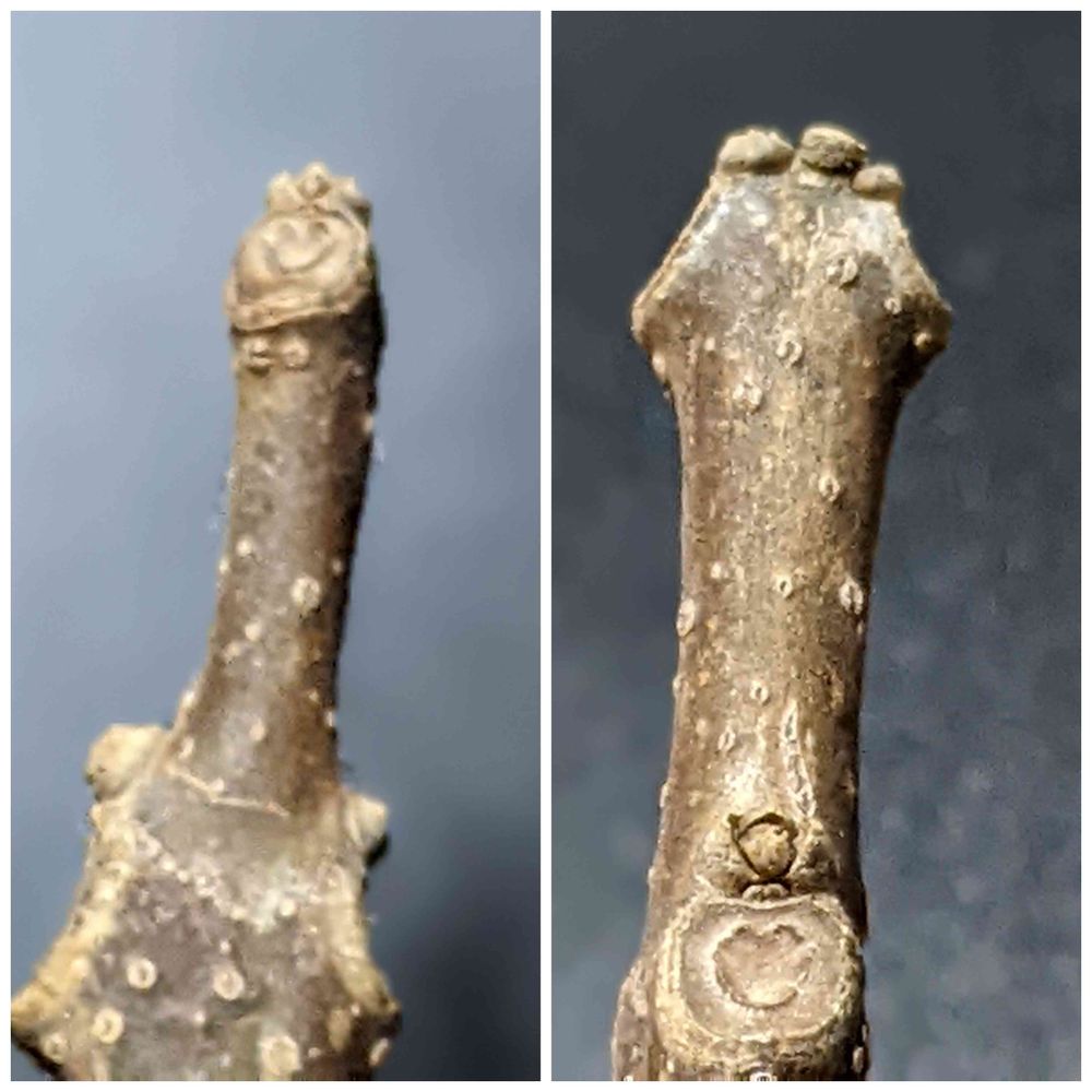 一対の、二つの葉痕が交互(十字対生)に付いています。