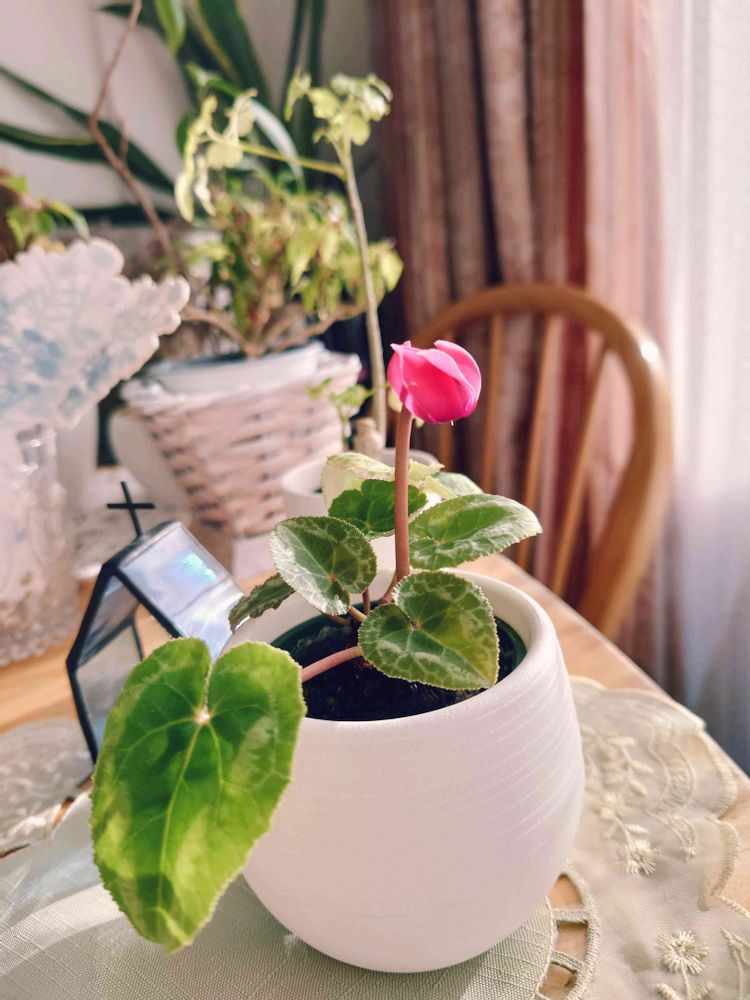 窓辺のシクラメンが咲いた、土曜日の朝です☺