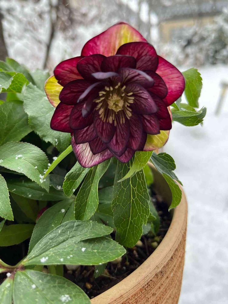 雪の中開花❄️我が家では2番目に開花したクリスマスローズ。