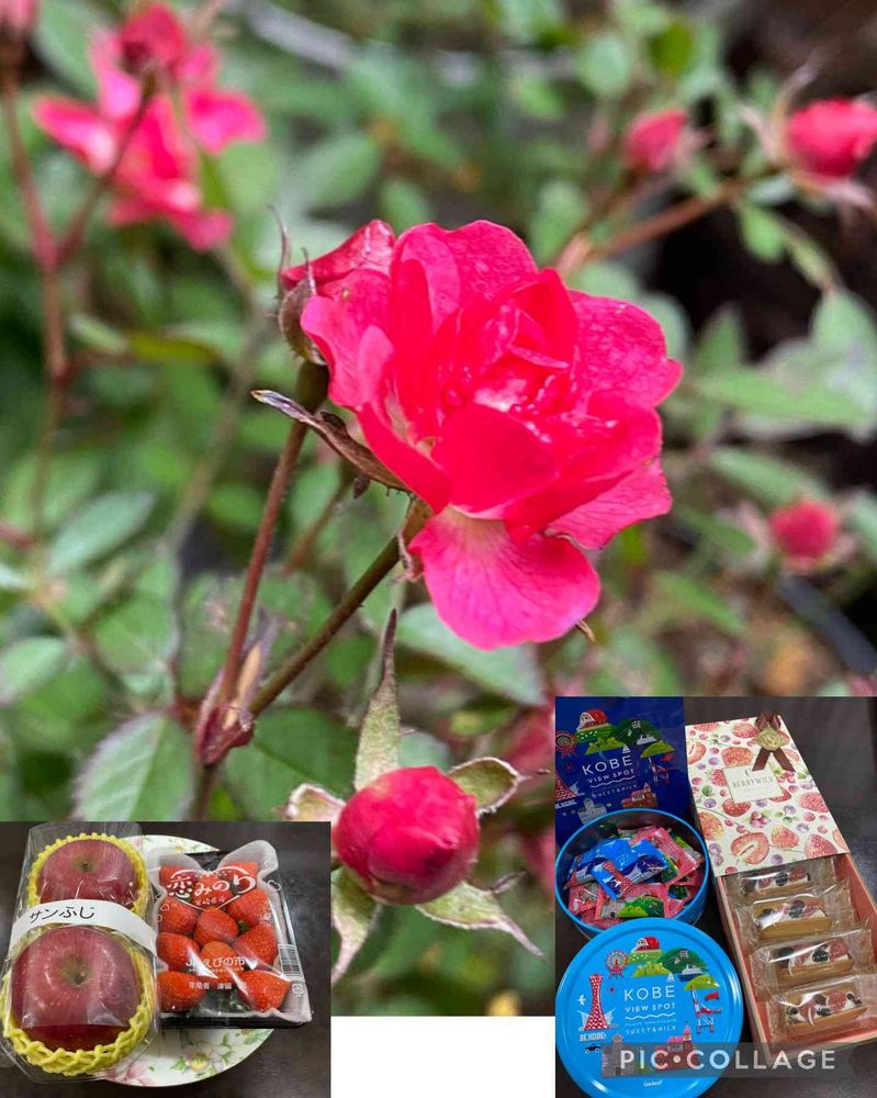 ☘️姫ばら[ワンダーファィブ]☘️......変わらずかわいく咲いたね💕👍✨雪を防ぐ為ガレージの屋根の下に守ってあげたから良かったぁ🌸👏👏👏先日2人のお友達から貰ったおみやげ、嬉しいな😍神戸ビュースポットを描いた青いチョコ缶、いろんな観光したくなるぅ❤️右端の焼き菓子、Cキューブの[ベリーウィッチ]っておいしいな〜😋🙇♀️✨✨