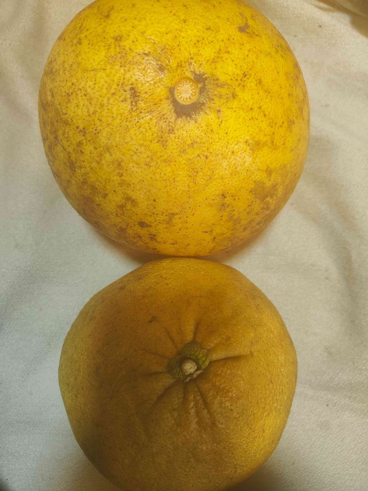 う〜らのはたけの〜友人から落ちてたのが届いた文旦も晩白柚も要らないと注文してあるが余り美味しくない(内緒)けど本人も昔滅多矢鱈に植えたので定かではないけどお礼に斑入りのハランをお持ち帰りして貰った鉢が減ったので良かったね〜