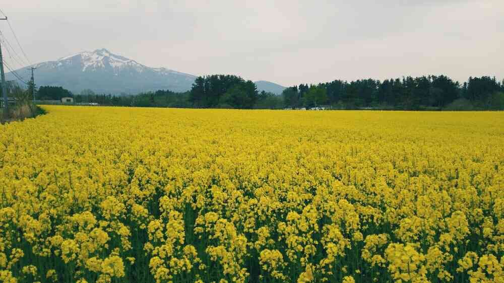 岩木山と菜の花の対比がとても綺麗です✨鮮やかな花の奥に雪が見えるのって粋ですね😊👌