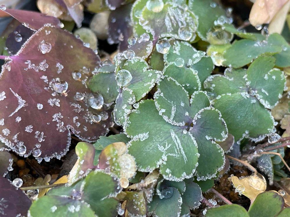 お庭の植物達、カチコチになりながらも頑張ってくれています👍🌿