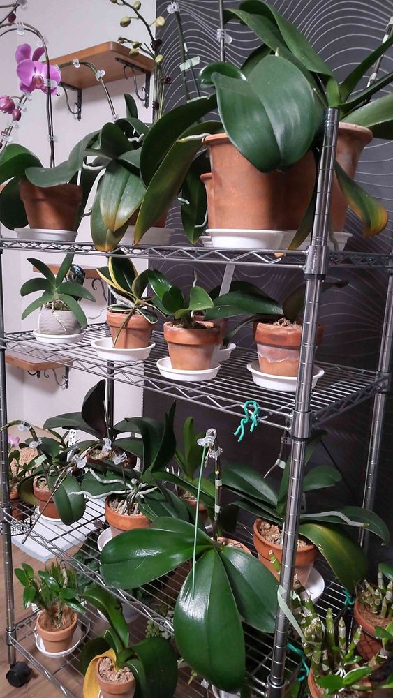 毎日ソファから観察しつつ先送りにしていた誘引と棚の移動をようやく済ませました😅新しい支柱をグイッと曲げて花茎に沿わせてクリップ。胡蝶蘭を並べ替えたりして終わる頃、後ろから一言…うちは胡蝶蘭屋か⁉️🙄ん〜そうかも😸