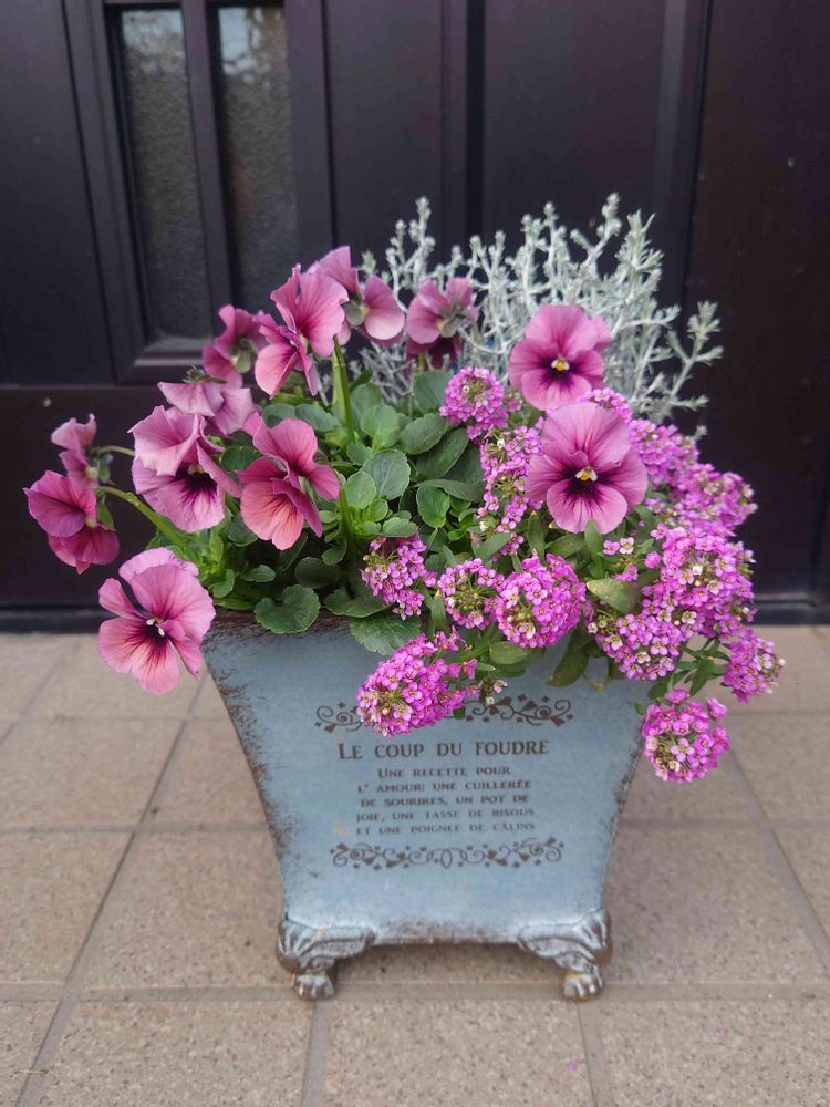 シックなピンクのビオラとアリッサムが咲き増えてさらに素敵になりましたね💗鉢ともぴったりで水名月さんのセンスと愛情が感じられます💕