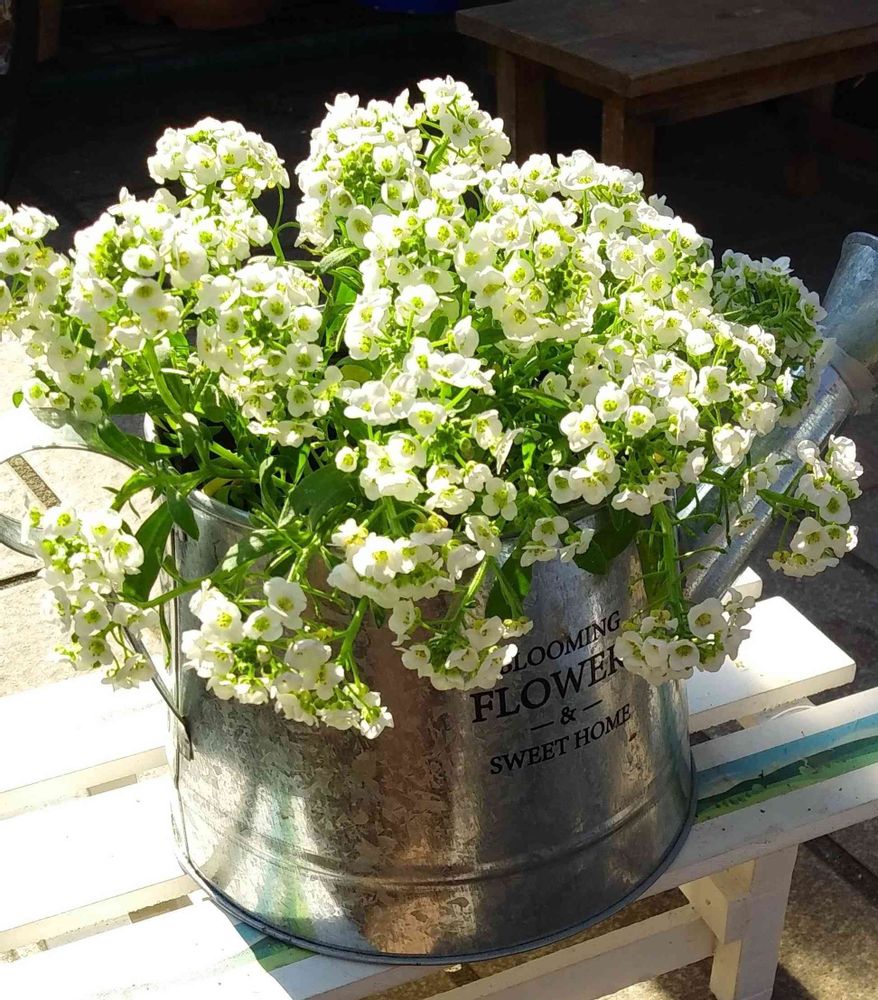 このブリキの容器と、白のアリッサムが凄くマッチしていて、素敵すぎ🙇🏻♀️💕