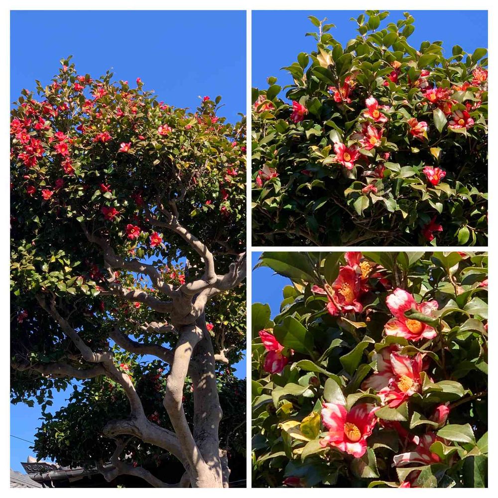 サザンカにしては開花が遅い上に、花形が椿に近いです。