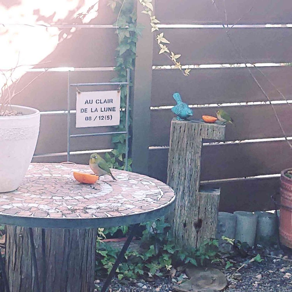 最初に来たのはシジュウカラ君だったのですが、最近はメジロご夫妻が占領しているので、今は4か所に🍊置いてます(˶ᐢωᐢ˶)