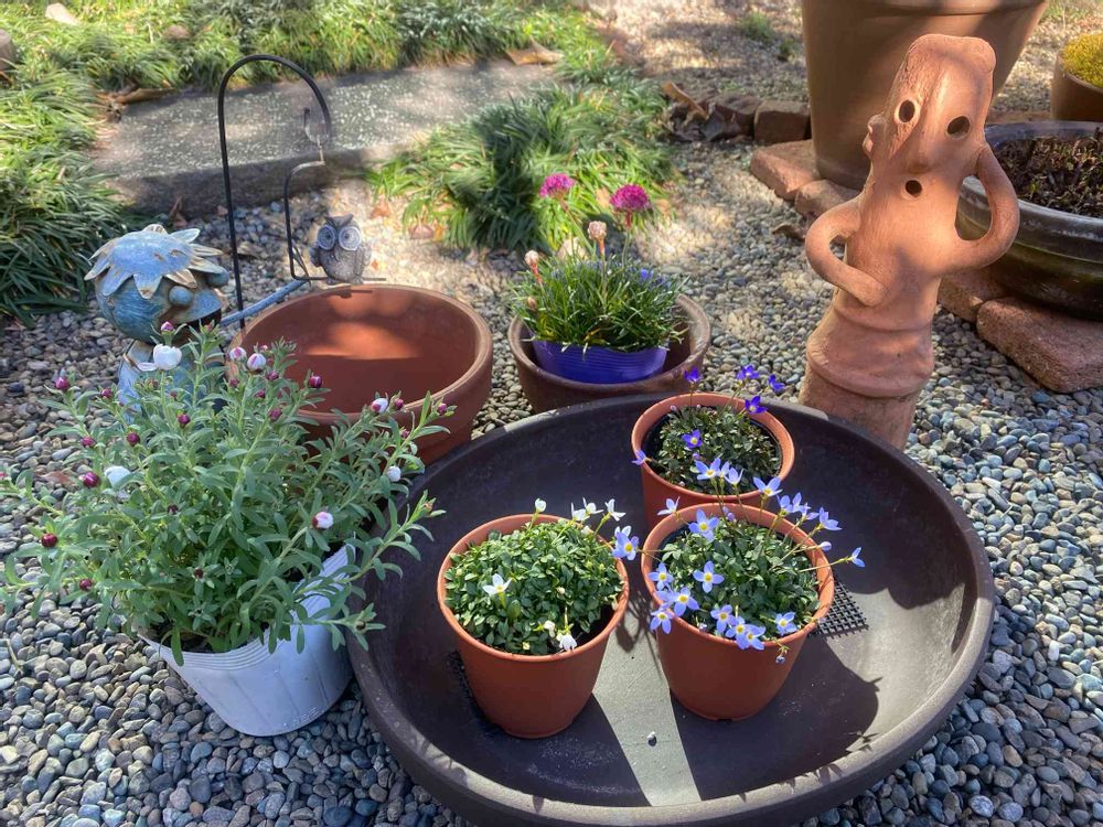 先日入手した花たちの植え替えに、庭番のみんなに鉢を選んでもらいました。ヒナソウの平鉢は難易度高いです😅