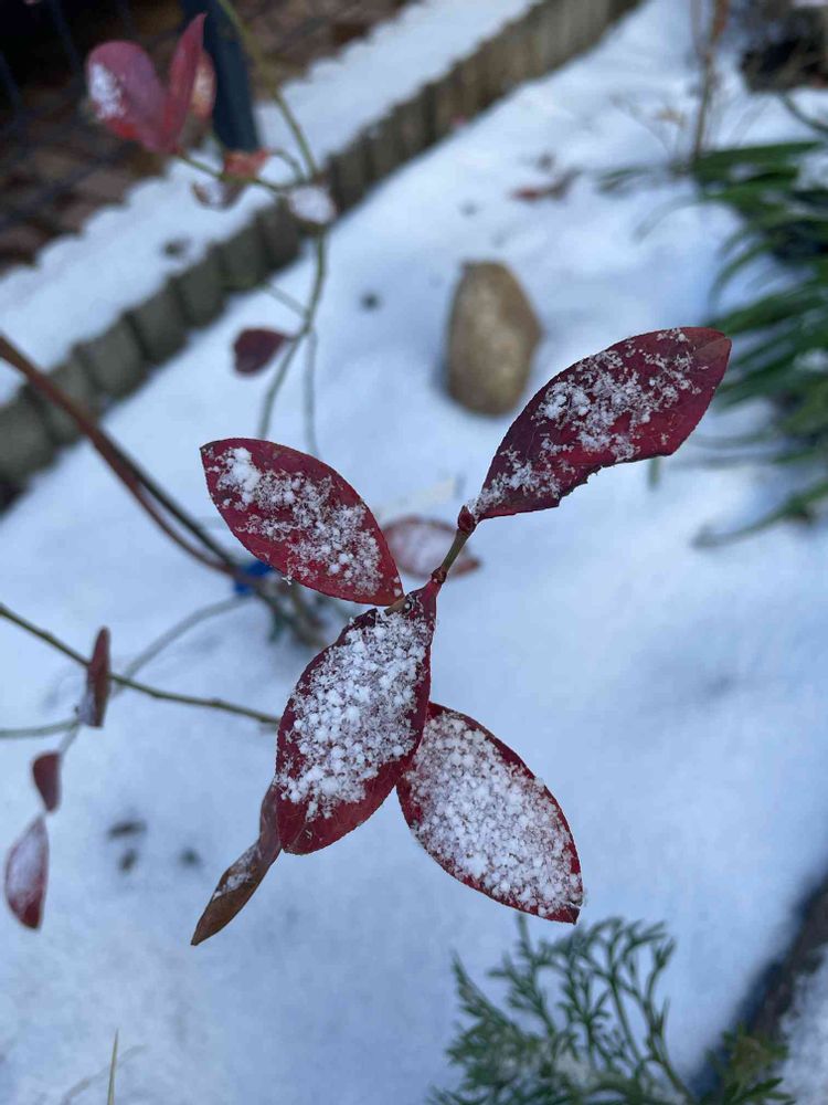 赤く紅葉した葉に白い雪❄️素敵ですね😊