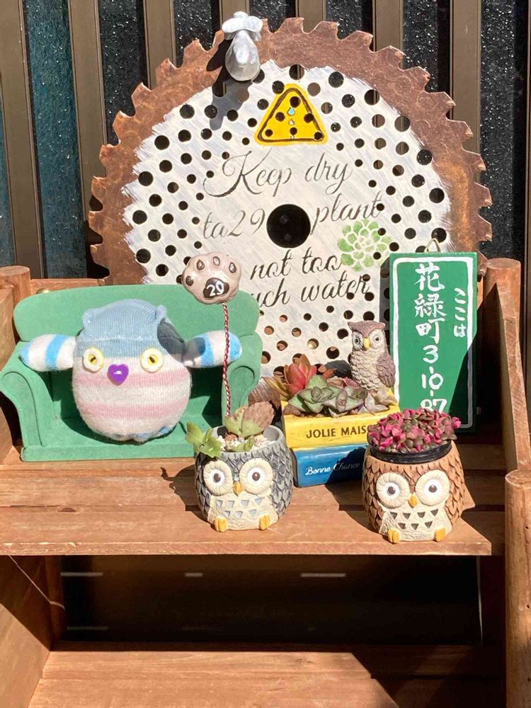 始めは桜吹雪が入ったフクロウ鉢だけでしたが、色近いを別のお店で見つけたので購入しました。