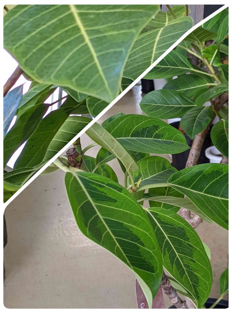 2025.8月に某サイトで購入した【アロカシア チャイ】の 突然変異?なんだろう 購入時、元々有った葉を(1枚目の葉)として、 下から新たな葉が出てきてる状態で到着しました(2枚目の葉) こちらに来て初めて出てきた葉に異変が。。 育て始めて出てきた初めての3枚目、4枚目 (途中から、斑1、斑2、、と続きます) どこまでこの謎の斑入葉が続くのか、 いや止まるのか……記録していきます