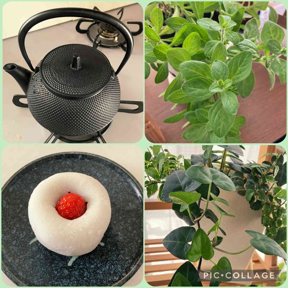 🍓大福を買ってきたから 南部鉄器の急須でお茶を沸かして ちょっと早いけどおやつタイム❀︎.(*´▽︎`*)❀︎.